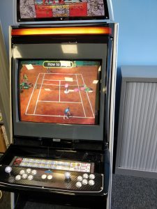 At the moment the only game we have is Virtua Tennis which runs on Sega’s own branded Naomi motherboard (for all you retro fans out there.) But its just in time for the Wimbledon Final this Sunday. We are also planning of installing a Namco System 256 along with a copy of Time Crisis 3 which bring back some good memories to some of the older ones of us in the office. As the Cabinet supports the JAMMA standard interface we have the option of installing numerous different arcade motherboards and systems. The next addition after Time Crisis may have to be a NEO GEO MVS and a copy of Metal Slug. I fear this could become too much of a distraction for me….